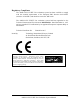 Regulatory Compliance The ADSP-21535 EZ-KIT Lite evaluation system has been certified to comply with the essential requirements of the European EMC directive 89/336/EEC (inclusive 93/68/EEC) and therefore carries the “CE” mark. The ADSP-21535 EZ-KIT Lite evaluation system had been appended to the Technical Construction File referenced ‘DSPTOOLS1’ dated December 21, 1997 and was awarded CE Certification by an appointed European Competent Body as listed below. Technical Certificate No: Issued by: Z600ANA1.