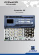3. Terms and definitions 3. TERMS AND DEFINITIONS BACKGROUND: a “Background” is a source, typically originating from a computer. Ascender 48 enables you to work with live or still (Frame) background sources — visually in back of all other sources. AR Y LAYER: a “Layer” is an image display element (such as a PIP window, Key, Logo or Background) that has a visual priority — either in front (or in back) of another layer. Up to 4 independent true-seamless scaled layers are available on the Ascender 48.