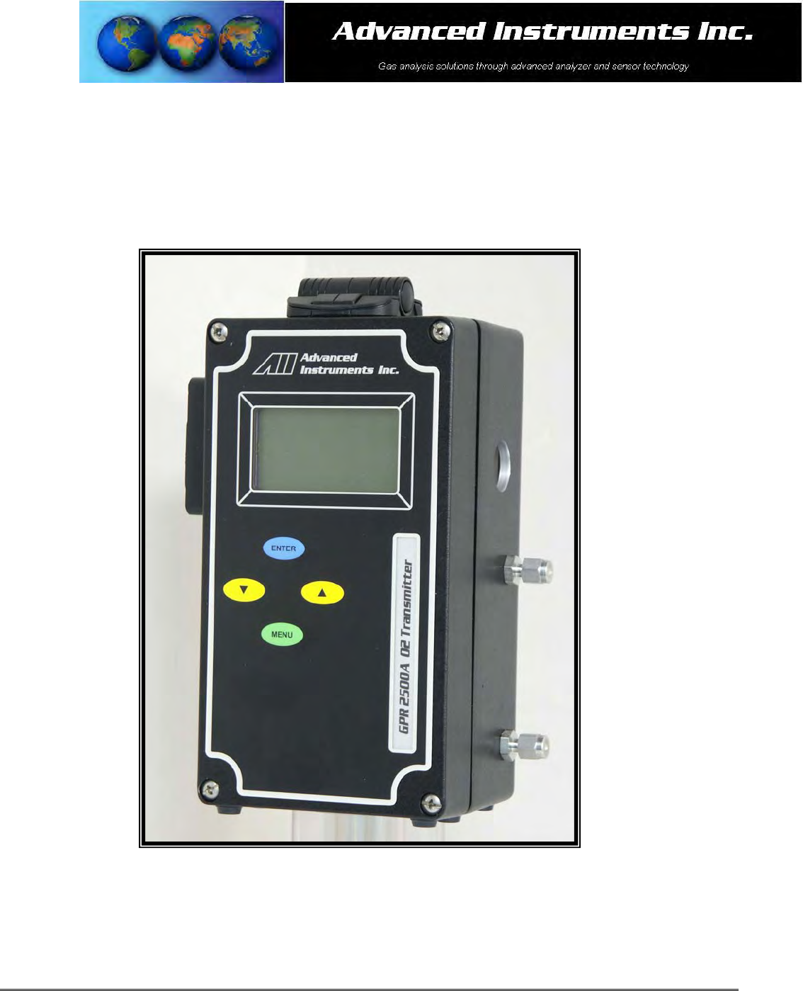 GPR-2500A Oxygen Transmitter Owner’s Manual 2855 Metropolitan Place, Pomona, CA 91767 USA ♦ Tel: 909-392-6900, Fax: 909-392-3665, e-mail: info@aii2.com, www.aii2.