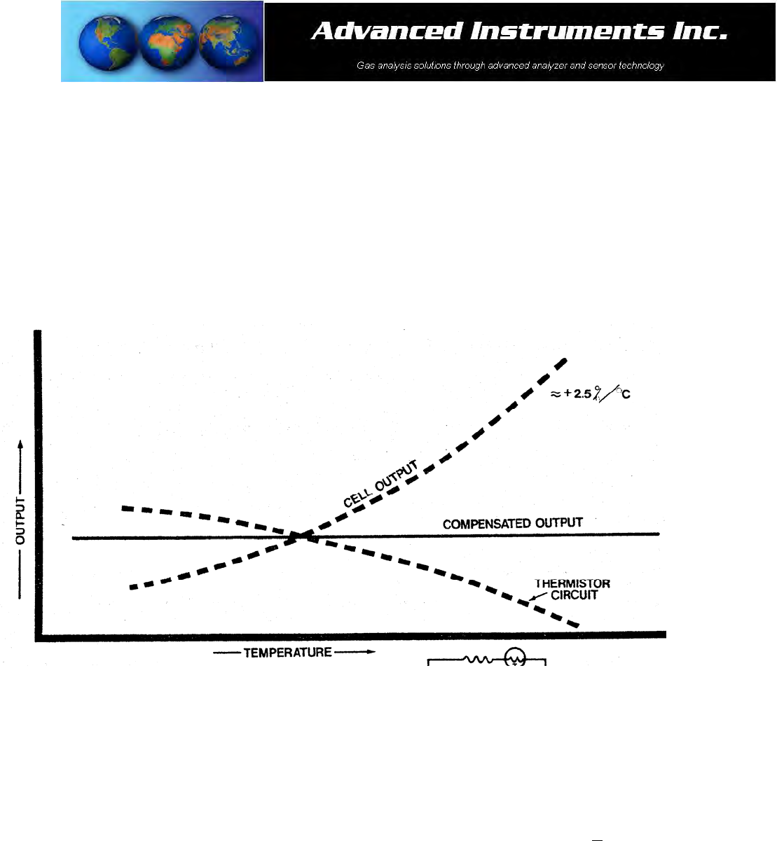 temperature compensation circuit employing a thermistor offsets this effect with an accuracy of +5% or better and