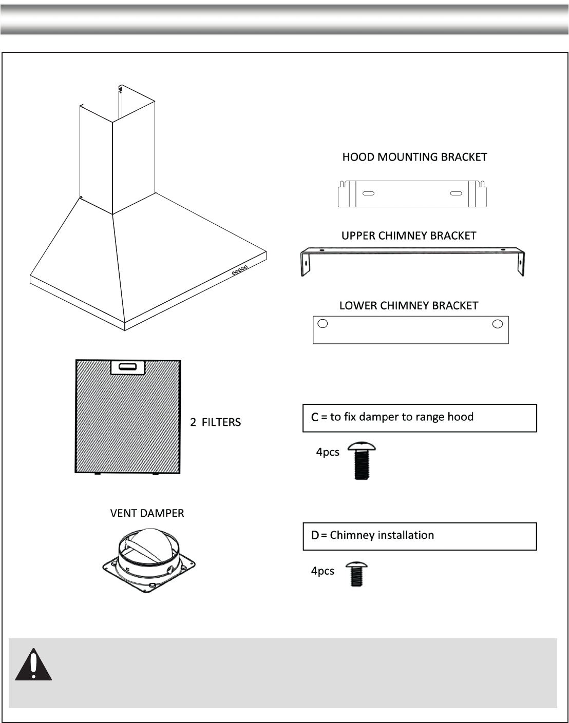 Hardware Note: For safety reasons, range hood mounting screws and anchors will not be