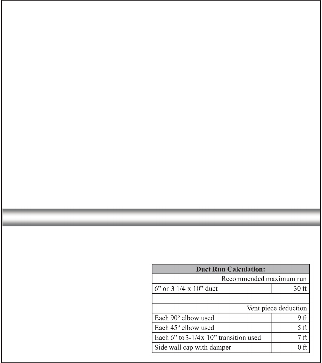 • A minimum of 6” round or 3-1/4 x 10” rectangular duct (purchased separately) must be used to