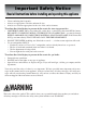 Use and Care Information: Operations: • • • • • Read and understand all instructions and warnings in this manual before operating the appliance. Save these instructions for future reference. Always leave safety grills and filters in place. Without these components, operating blowers could catch on to hair, fingers and loose clothing. NEVER dispose cigarette ashes, ignitable substances, or any foreign objects into blowers. NEVER leave cooking unattended.