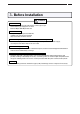 BEFORE INSTALLATION 3. Before Installation Caution Check the Gas • Check that the rating plate indicates the correct type of gas. Check that the gas supply line is sized for 62.3 kW(or 49.0 kW) for this unit. Check the Power • The power supply required is 230V AC, at 50Hz. Using the incorrect voltage may result in fire or electric shock.