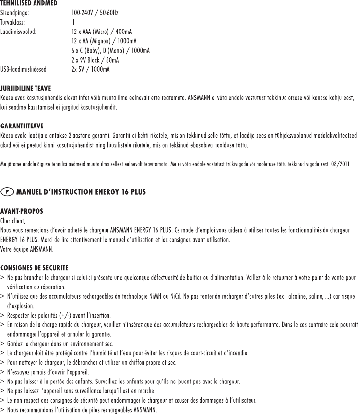 Charger for cylindrical cells Energy 16 plus AAA , AA , C, D, 9