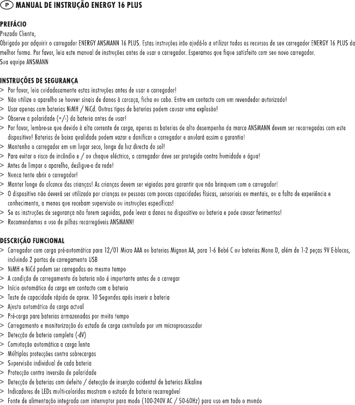 Charger for cylindrical cells Energy 16 plus AAA , AA , C, D, 9