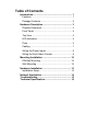 Table of Contents Introduction ................................................................ 1 Features ................................................................... 1 Package Contents .................................................... 2 Hardware Description ............................................... 3 Physical Dimension .................................................. 3 Front Panel .............................................................. 4 Top View ..................................