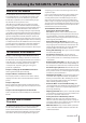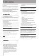 1 – Introduction Thank you very much for purchasing the TASCAM TA-1VP Vocal Producer. Before connecting and using the unit, please take time to read this manual thoroughly to ensure you understand how to properly set up and connect the unit, as well as the operation of its many useful and convenient functions. After you have finished reading this manual, please keep it in a safe place for future reference. You can also download the Owner's Manual from the TASCAM web site (http://tascam.com/).