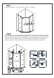 7. Install the handle (16) on the swing glass (7) as shown inside 8. As shown in the picture, install the Hinge Side Vinyl Seal (5) on the glass of the side near the pivot , and install the magnetic strip (6) on the other side of the glass. Install the bottom seal strip (4) on the bottom of the swing glass. If the upper and lower part of the magnetic strip cannot be aligned at the same time, adjust two pivots as shown in the picture to align the magnetic strip at the same time.