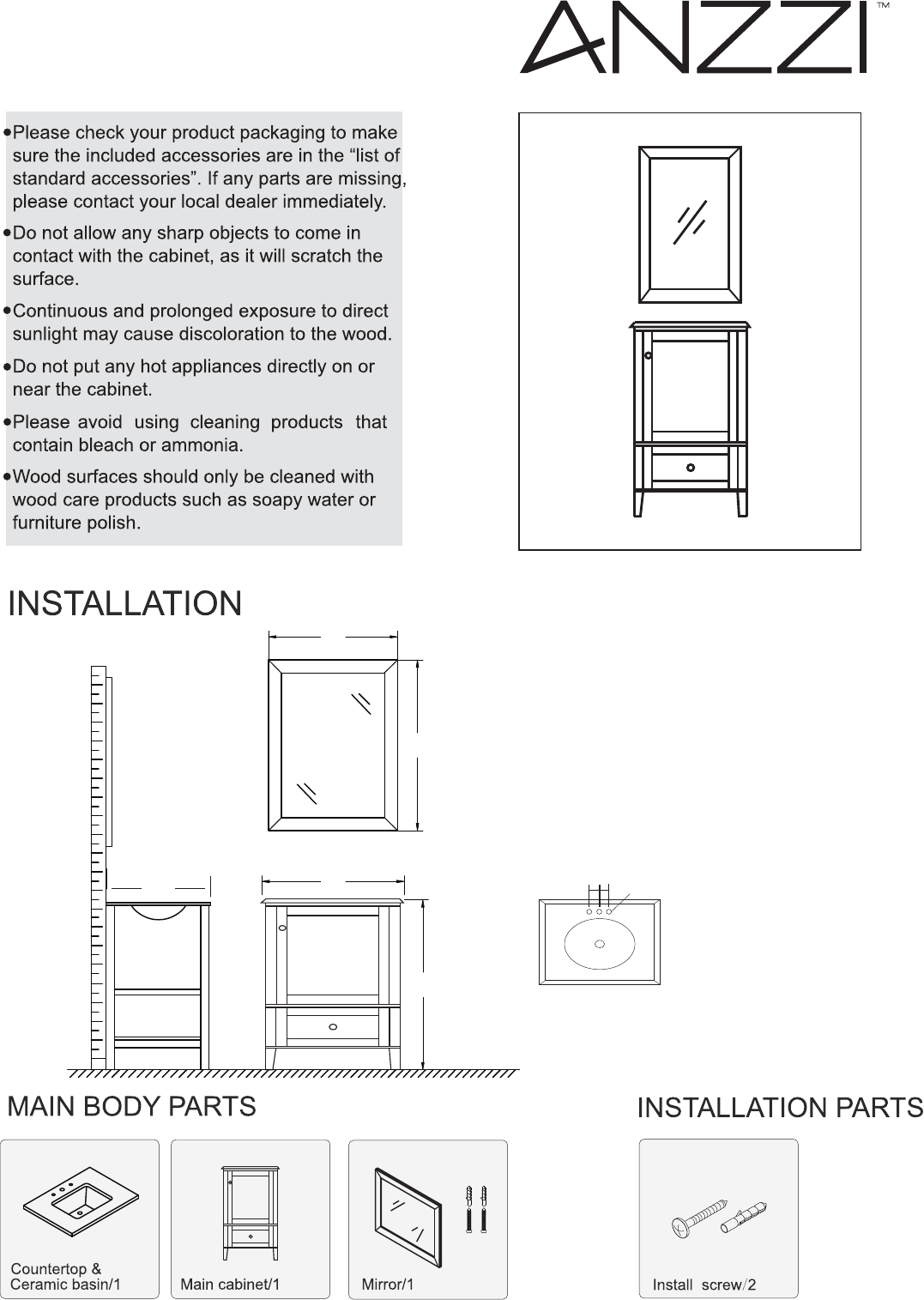 ALEXANDER NOTE: Mirror(s) not included with all SKU builds. Check listing for details. 19.7" 31.5" 19.3" 21" 2" 34.4" 2" φ 1.