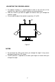 ADJUSTING THE VIEWING ANGLE • For optimal viewing it is recommended to look at the full face of the monitor, then adjust the monitor’s angle to your own preference. • Hold the stand so you do not topple the monitor when you change the monitor’s angle. • You are able to adjust the monitor’s angle from -5° to 20°. 20° Figure 2 NOTES • Do not touch the LCD screen when you change the angle. It may cause damage or break the LCD screen.