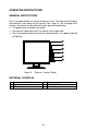 OPERATING INSTRUCTIONS GENERAL INSTRUCTIONS Press the power button to turn the monitor on or off. The other control buttons are located at front panel of the monitor (See Figure 3). By changing these settings, the picture can be adjusted to your personal preferences. • The power cord should be connected. • Connect the video cable from the monitor to the video card. • Press the power button to turn on the monitor position. The power indicator will light up.