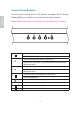 Control Panel Buttons English Use the control buttons on the LCD Monitor to display the On Screen Display(OSD) menu. Below is a list of the control button functions. Note: Please be advised that some illustrations are simulated for your reference. 1. Display main menu. 1 Exit from OSD menu. Select the desired item when in OSD menu. 2. ▼ 3. ▲ 4. 2 When not in OSD menu, it is to immediately activate Contrast/ Brightness menu. Select the desired item when in OSD menu.