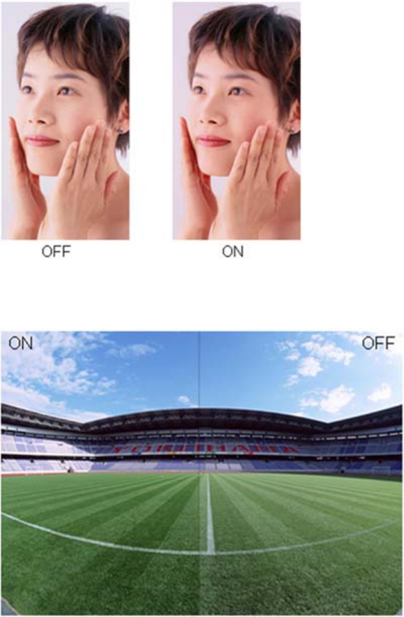 Green Field: When "Green Field" is turned on, the green color is enriched so that football field and mountain landscape