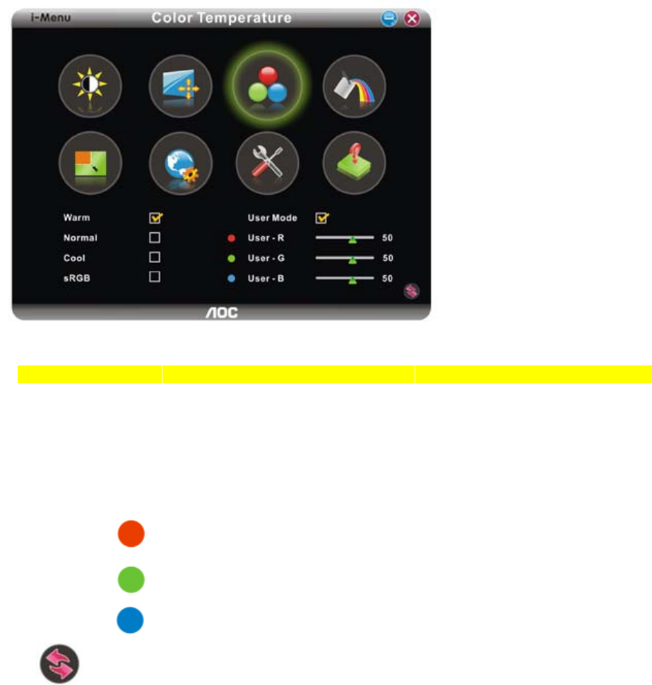 1) When “User” is chosen, you can change the monitor color to your desired color by setting the value of R-G-B.