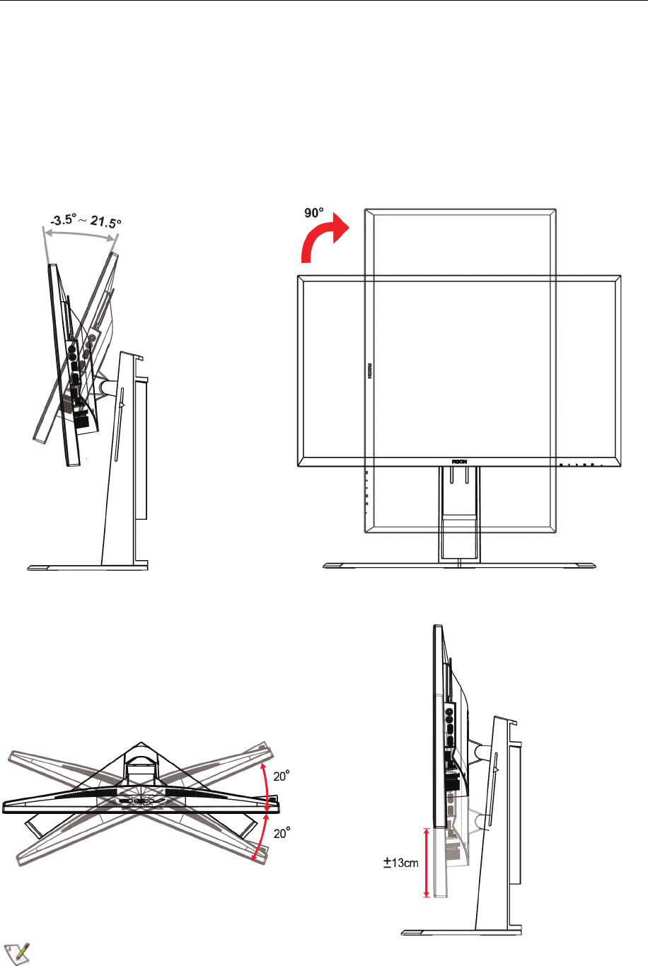 Tilt angle:-3.5°~21.5° Pivot angle: 0°~90°