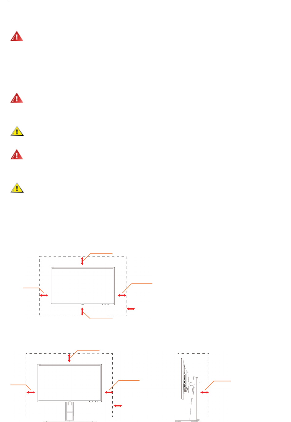 See below the recommended ventilation areas around the monitor when the monitor is installed on the wall or on