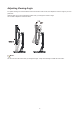 Adjusting Viewing Angle For optimal viewing it is recommended to look at the full face of the monitor, then adjust the monitor’s angle to your own preference. Hold the stand so you will not topple the monitor when you change the monitor’s angle. You are able to adjust the monitor as below: NOTE: Do not touch the LCD screen when you change the angle. It may cause damage or break the LCD screen.