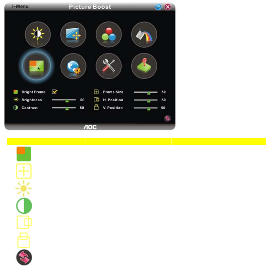 Bright Frame on or off Disable or Enable Bright Frame