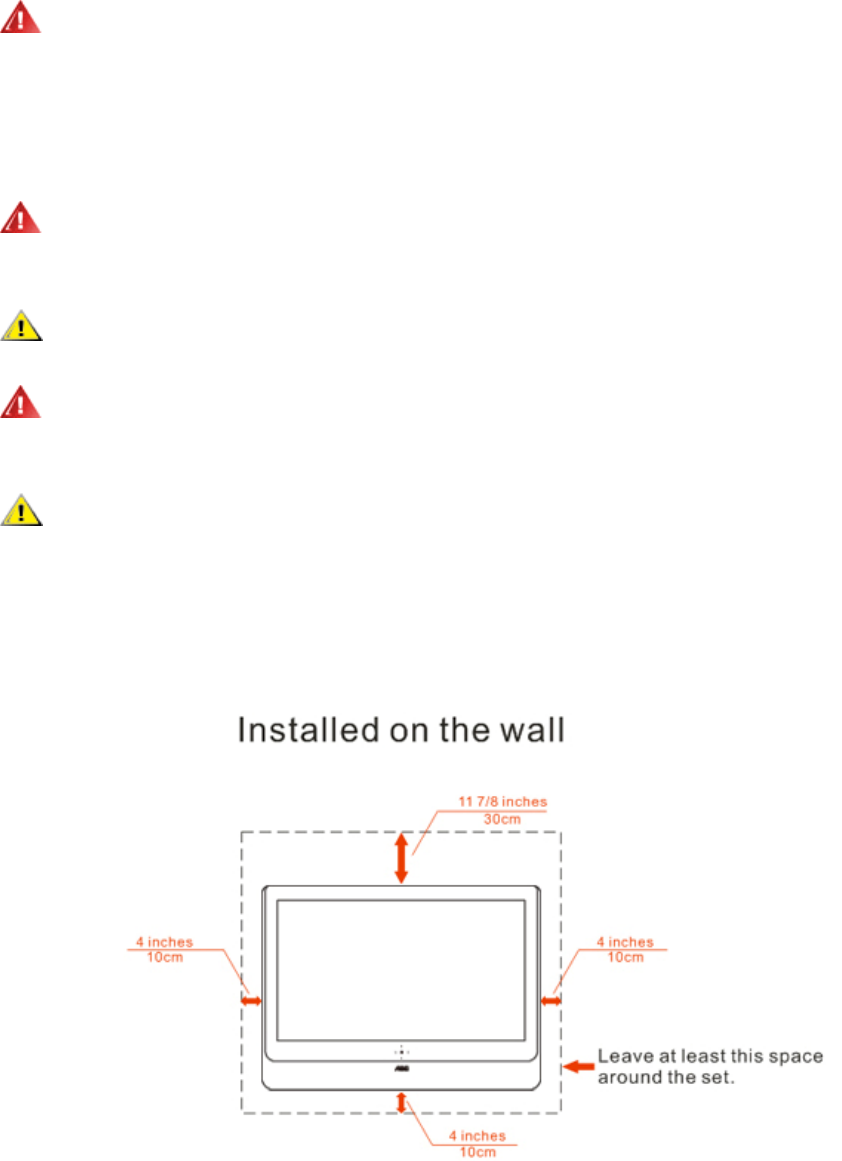 See below the recommended ventilation areas around the monitor when the monitor is installed on the wall or on