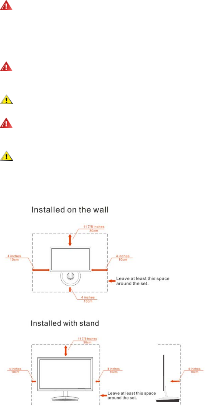 See below the recommended ventilation areas around the monitor when the monitor is installed on the wall or on