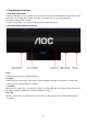 3. Operating Instructions 3.1 General Instructions Press the power button to turn the monitor on or off. The other control knobs are located at front panel of the monitor (See Figure ). By changing these settings, the picture can be adjusted to your personal preferences. * The power cord should be connected. * Press the power button to turn on the monitor. The power indicator will light up. 3.2 Control Buttons and Connections Power Press the Power button to turn on/off the monitor.