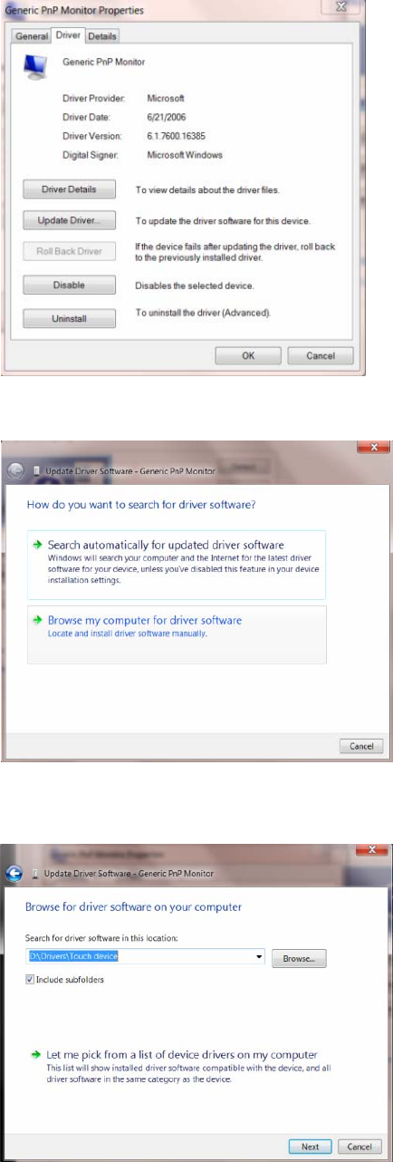 8. Open the "Update Driver Software-Generic PnP Monitor" window by clicking on “Update Driver... “and then