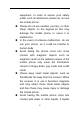 leakage or other malfunction. If the charger comes in contact with water or other liquid the power must immediately be switched off to avoid an electrical short or shock, fire or malfunction of the charger. Please do not disassemble or modify the charger, as it will lead to bodily harm, electrical shock, fire or damage to the charger. Please do not use the charger in the bathroom or other excessively moist areas, as this will cause electrical chock, fire or damage to the charger.