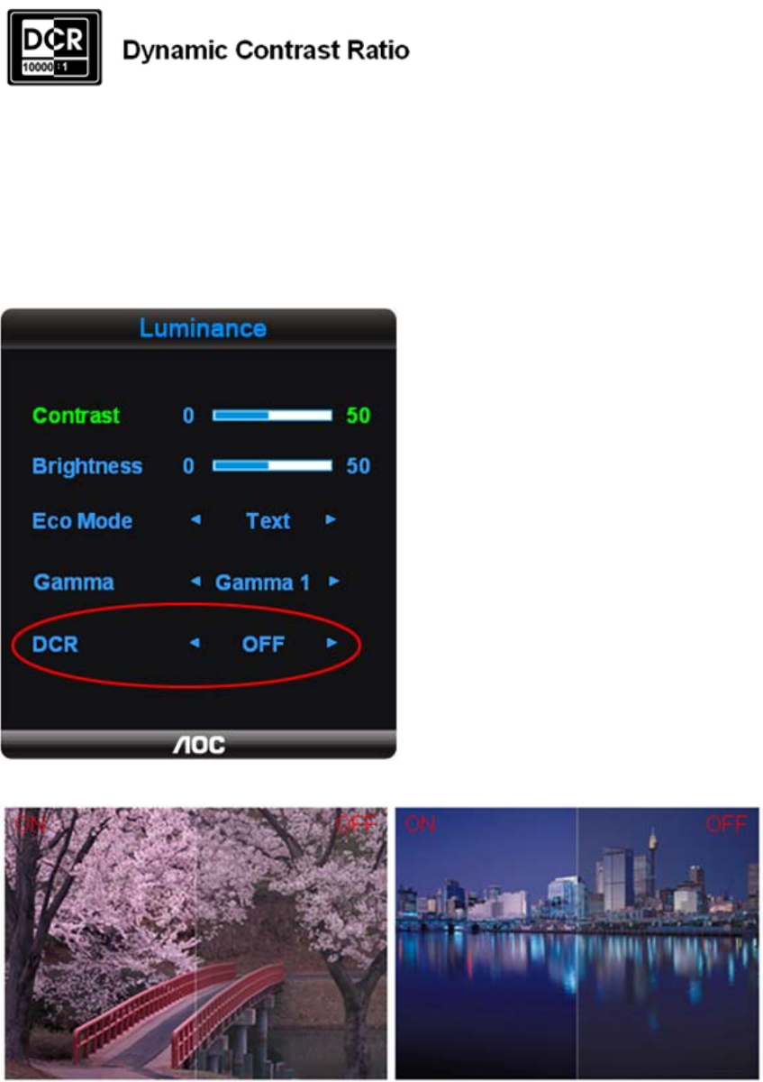 Dynamic Contrast Ratio (DCR) auto adjusts the brightness of the screen so users can see the darker areas of the