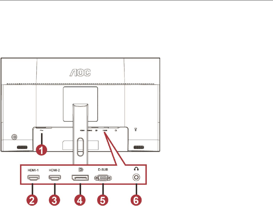 1 Connect the power cable to the AC port on the back of the monitor.