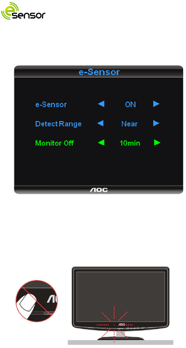 AOC “e-Sensor” is an infrared sensor embedded in your monitor bezel; it enables your monitor to turn off while you