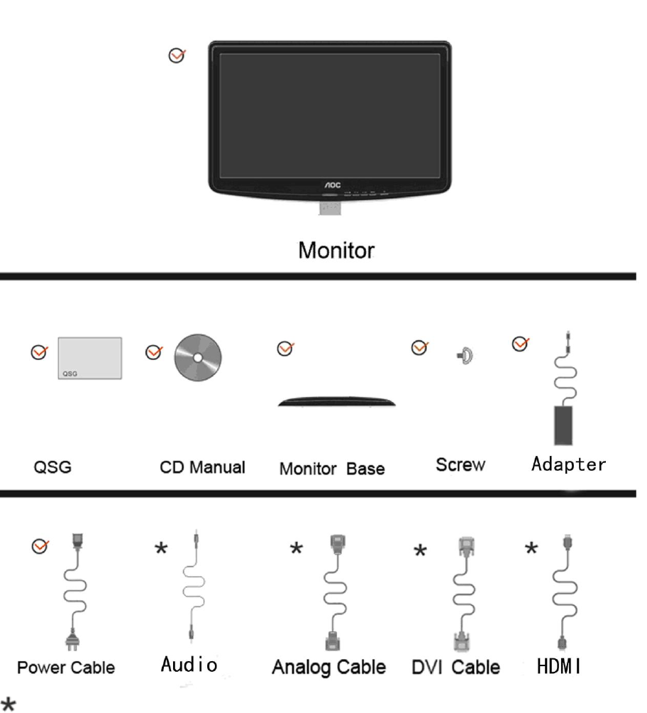 Audio, DVI, and HDMI cables) will be provided for all countries and regions.