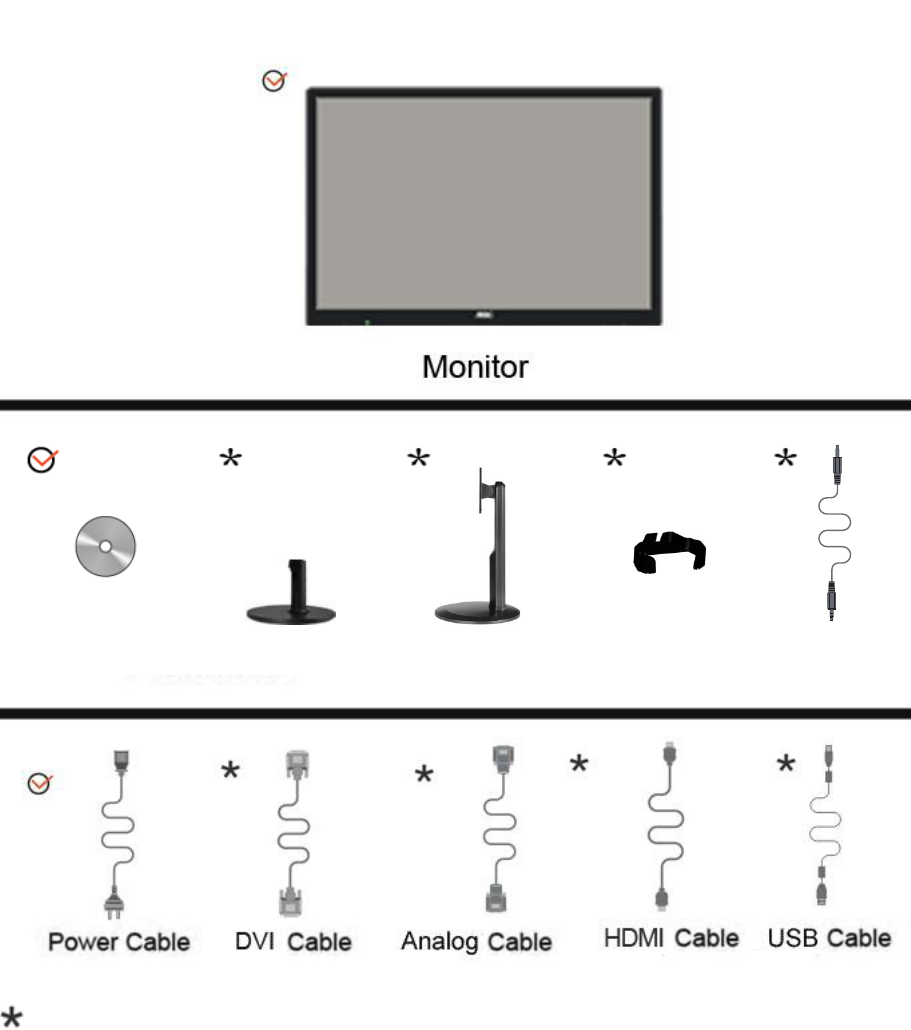 Not all signal cables (Audio.VGA, DVI,USB and HDMI cables) will be provided for all countries and regions.