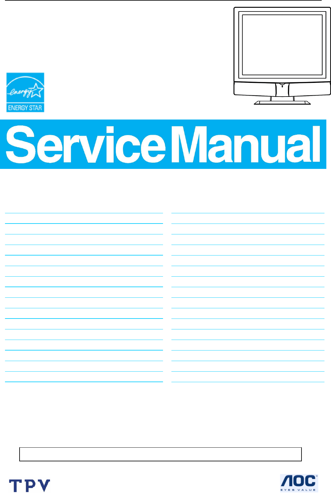 20” LCD TV Color Monitor AOC L20S421 Important Safety Notice Proper service and repair is important to the safe, reliable operation of all AOC Company Equipment. The service procedures recommended by AOC and described in this service manual are effective methods of performing service operations. Some of these service operations require the use of tools specially designed for the purpose. The special tools should be used when and as recommended.