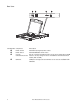 Rear View 1 PS/2 - USB CPU aem0351a 0 POWER Item Number Component Description Power Socket Standard 3-prong AC power socket. Power Switch Standard ON/OFF rocker switch Custom Port for connecting the Rack LCD Console to the target device (KVM Communication Port switch or server) using one of the included custom communication cables (PS2 or USB). USB Port USB pass-through from the USB Port on the front of the Rack LCD Console.