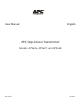 Introduction Introduction The APC® step-down transformers are used to convert a higher input voltage (208-200 V) to a lower output voltage (120-100 V) which might be more fitting for certain environments or system configurations. Note: Illustrations in this document may vary from your actual configuration. Unpacking Read the Safety Guide before installation. Note: The model and serial numbers are located on a small, rear panel label. For some models, an additional label is located behind the front bezel.