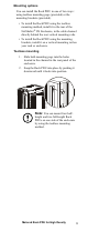 Mounting options You can install the Rack PDU in one of two ways: using toolless mounting pegs (provided) or the mounting brackets (provided). • To install the Rack PDU using the toolless mounting method, install it in the rear of the NetShelter® SX Enclosure, in the cable channel directly behind the rear vertical mounting rails. • To install the Rack PDU using the mounting brackets, install it on a vertical mounting rail on your rack or enclosure. Toolless mounting 1 .