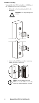 Bracket mounting To mount the Rack PDU vertically in a NetShelter or any standard EIA-310 rack or enclosure: pdu0344a 1 . Attach the vertical-mounting brackets to the Rack PDU. Caution: Use only the supplied screws. pdu0190b 2 . Install the Rack PDU on a vertical mounting rail in your rack or enclosure. Note: You can mount two Rack PDUs on one side of the enclosure by using the vertical mounting brackets.