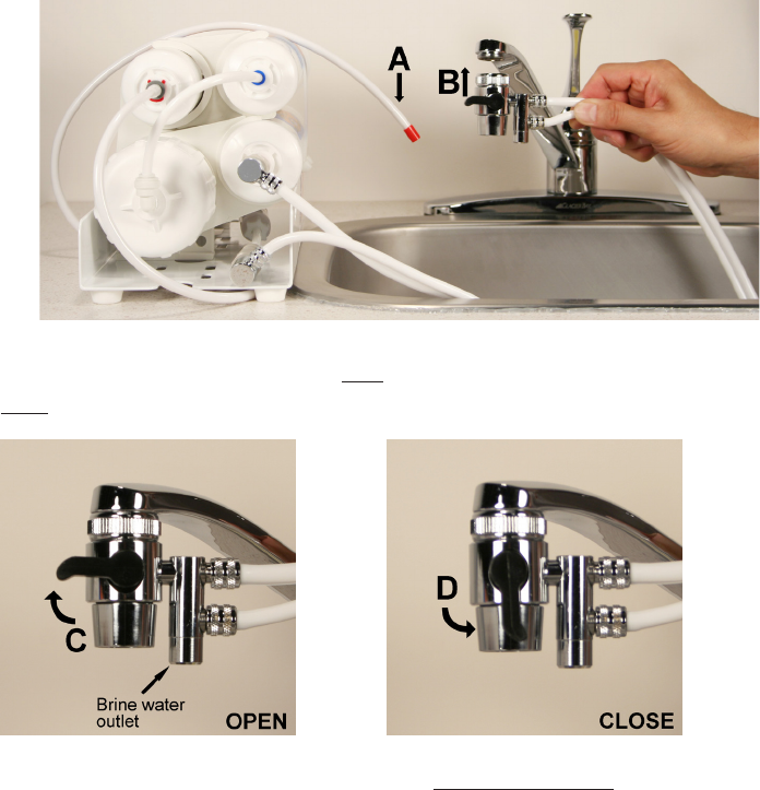 the diverter head Clockwise to direct the water into the RO system (See C, Figure B). Turn back knob