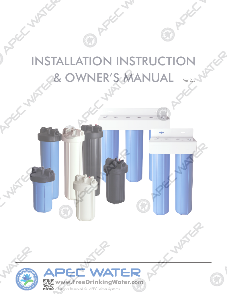 WHOLE HOUSE WATER FILTERS INSTALLATION INSTRUCTION & OWNER’S MANUAL Ver 2.3 www.FreeDrinkingWater.