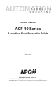 AUTOMATION P R O D U C T S G R O U P, I N C. Operator’s Manual ACF-10 Series Acoustical Flow Sensor for Solids Rev. 1a, 2/03 Automation Products Group, Inc. APG...Providing tailored solutions for measurement applications Tel: 1/888/525-7300 • Fax: 1/435/753-7490 • www.apgsensors.com • E-mail: sales@apgsensors.