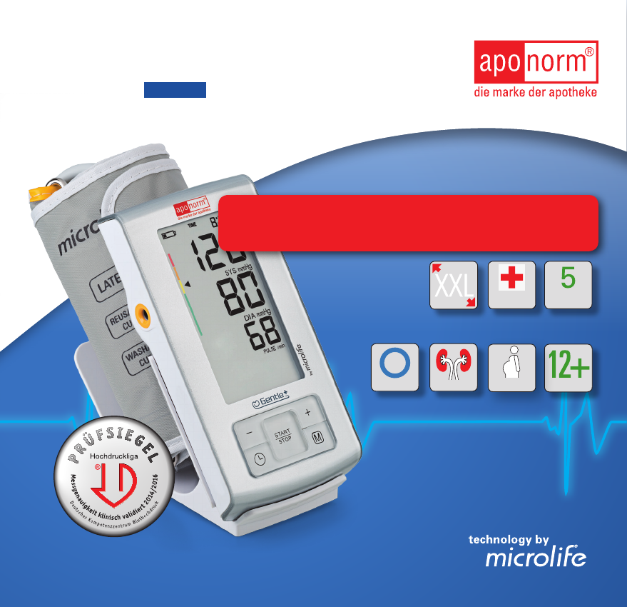 aponorm® Basis Dear Customer, Your new aponorm® by microlife blood pressure monitor is a reliable medical device for taking measurements on the upper arm. It is simple to use, accurate and comes highly recommended for blood pressure monitoring in your home. This device was developed in collaboration with physicians and clinical tests carried out proving its measurement accuracy to be of a very high standard.