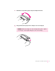 3 Distribute the toner powder by gently rocking the cartridge back and forth. 4 Firmly pull the tab directly away from the cartridge to remove the sealing tape. WARNING Pull the tab straight out of the cartridge. Don’t pull too quickly or at an angle—either might damage the seals on the cartridge.