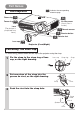 Part Names Indicates the corresponding reference page The Projector Zoom ring 15 34 Focus ring 15 Air filter cover (An air filter is inside.) Lens (The picture is projected from here.) 13 Remote sensor 8 Elevator button 8 Elevator feet Lens cap 14 Projector (Front/Right) Fastening The Lens Cap To avoid losing, please fasten the lens cap to the projector using the strap. 1 Fix the strap to the strap ring of lens cap, as the right drawing.