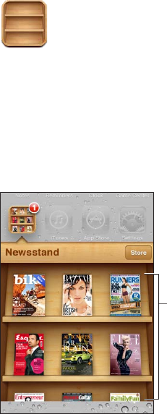 Newsstand organizes your magazine and newspaper app subscriptions with a shelf that lets you