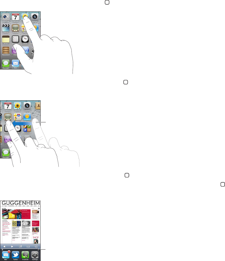 View recently used apps (iPod touch 3rd generation or later): Double-click the Home button