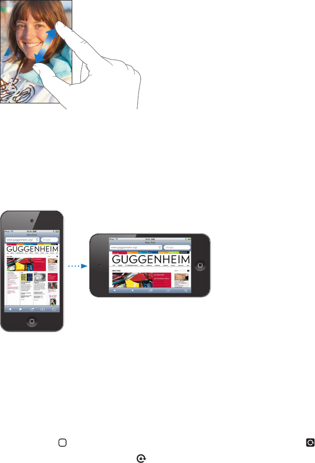 When viewing photos, webpages, email, or maps, you can zoom in and out. Pinch your ngers