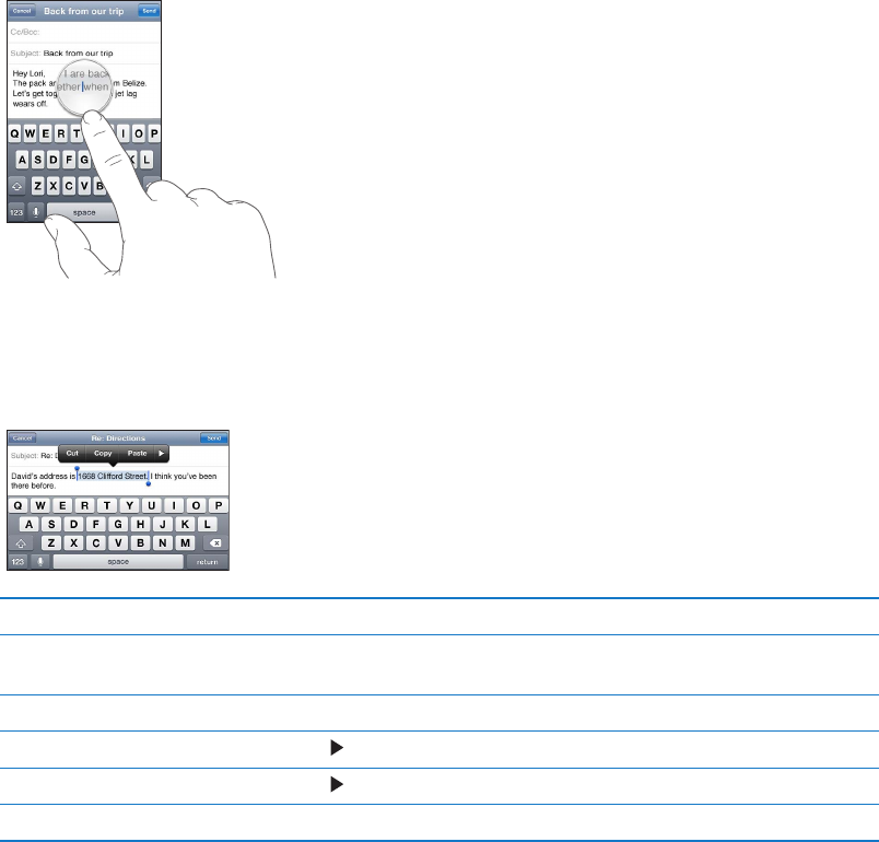 Select text: Tap the insertion point to display the Select and Select All buttons. You can also