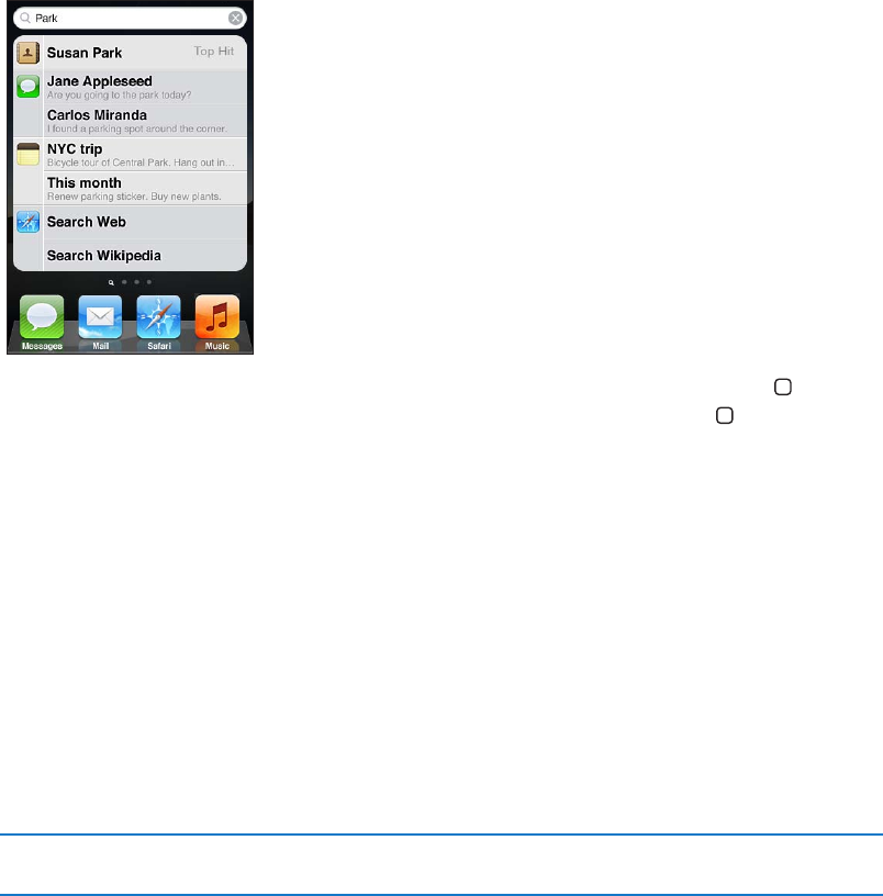 Search iPod touch: From your rst Home screen, ick right or press the Home button , then