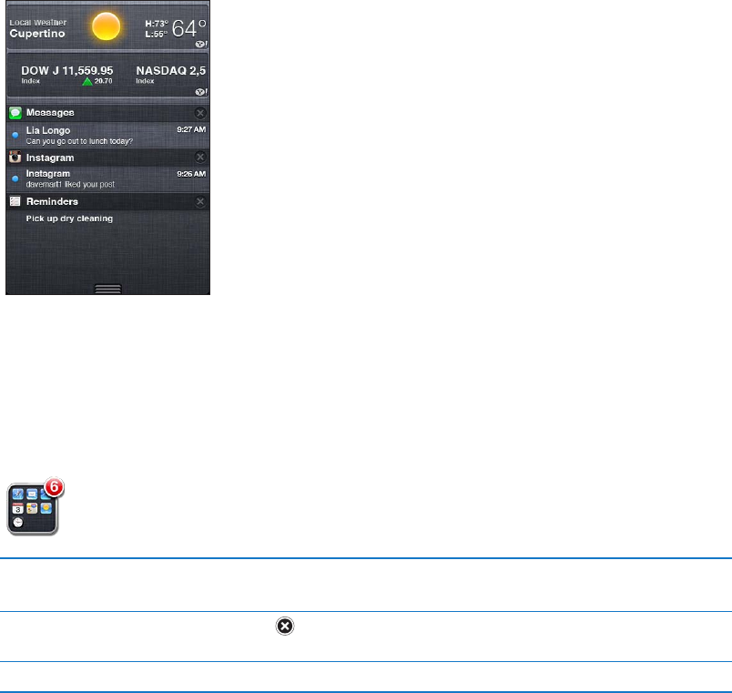 Alerts appear on the lock screen, or briey at the top of the screen when you’re using iPod touch.